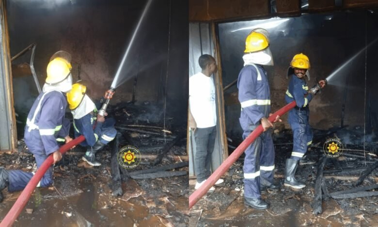 Fire personnel from the Techiman Municipal Fire Station rushed to the scene after receiving a distress call around 10:29 a.m., managing to stop the blaze from completely consuming the mixed-use building.